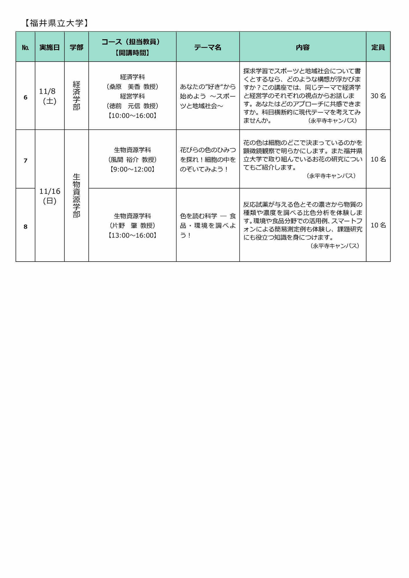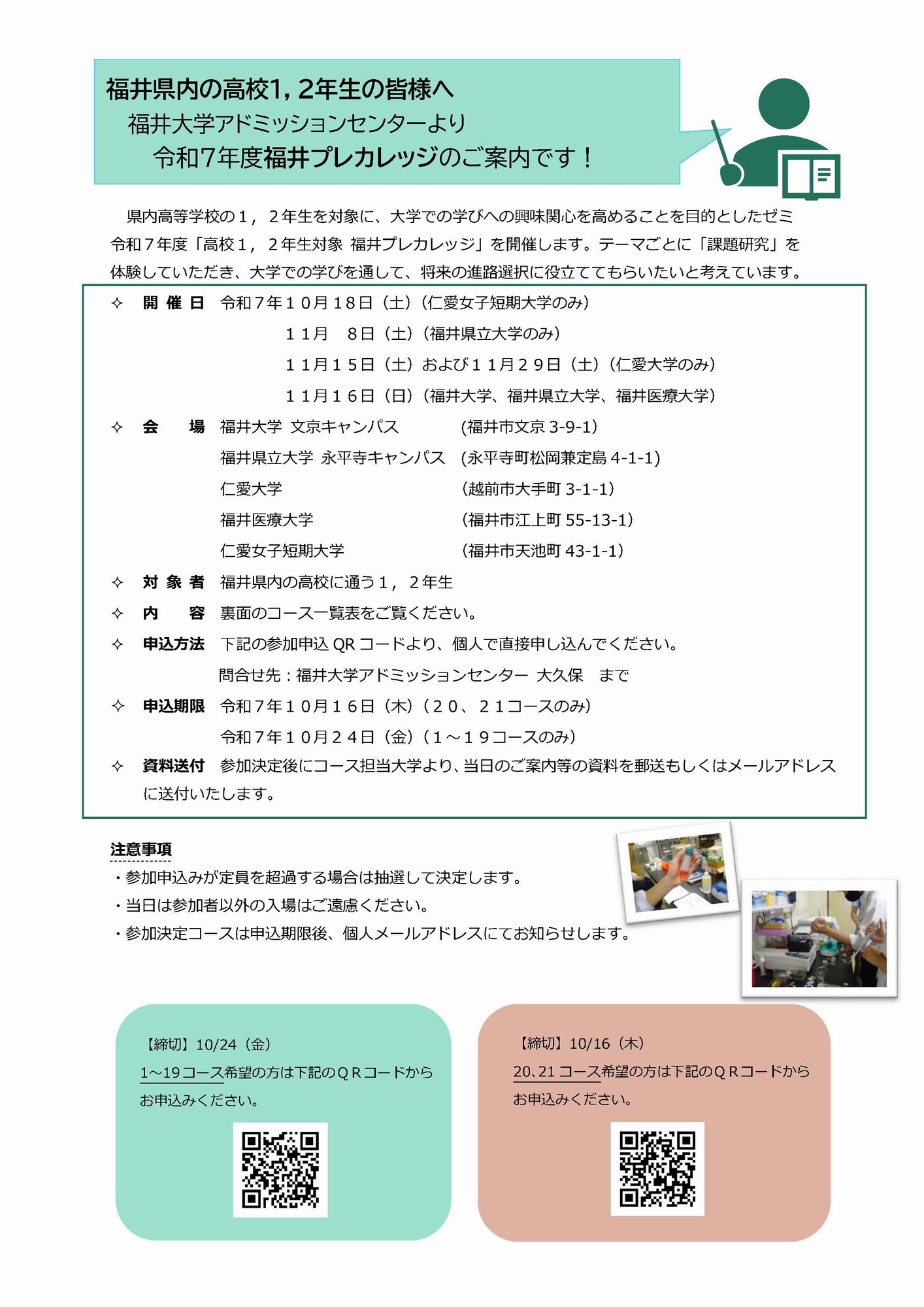 「福井プレカレッジ」は 県内高校生を対象に、県内大学の学びへの興味関心を高めることを目的としたゼミです。