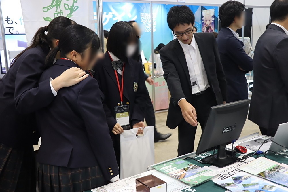 ブースでは、県内企業や自治体と連携して課題解決に取り組む「コーオプ実習」、地域現場で学ぶ「フィールドワーク」、データを活用した「地域データ分析」などの演習も紹介。