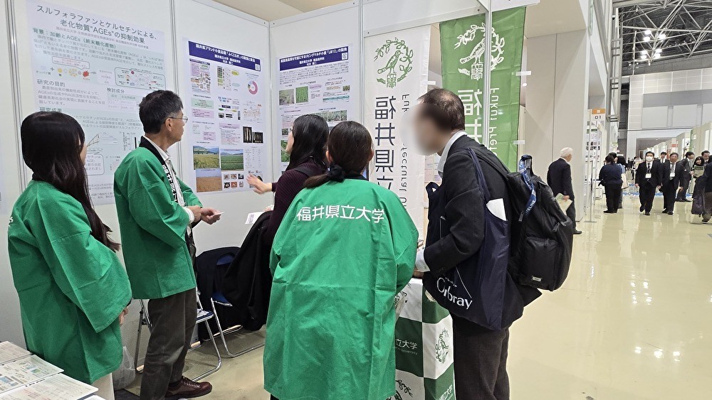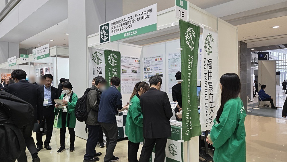 福井県立大学生物資源学部は、令和7年11月26日から28日に東京ビッグサイトで開催された「アグリビジネス創出フェア」に初めて出展し、本学の研究成果や教育の特色を紹介しました。本フェアは全国から農業関連の企業や研究機関が集まる国内最大級のマッチングイベントで、多くの来場者との交流の場となりました。