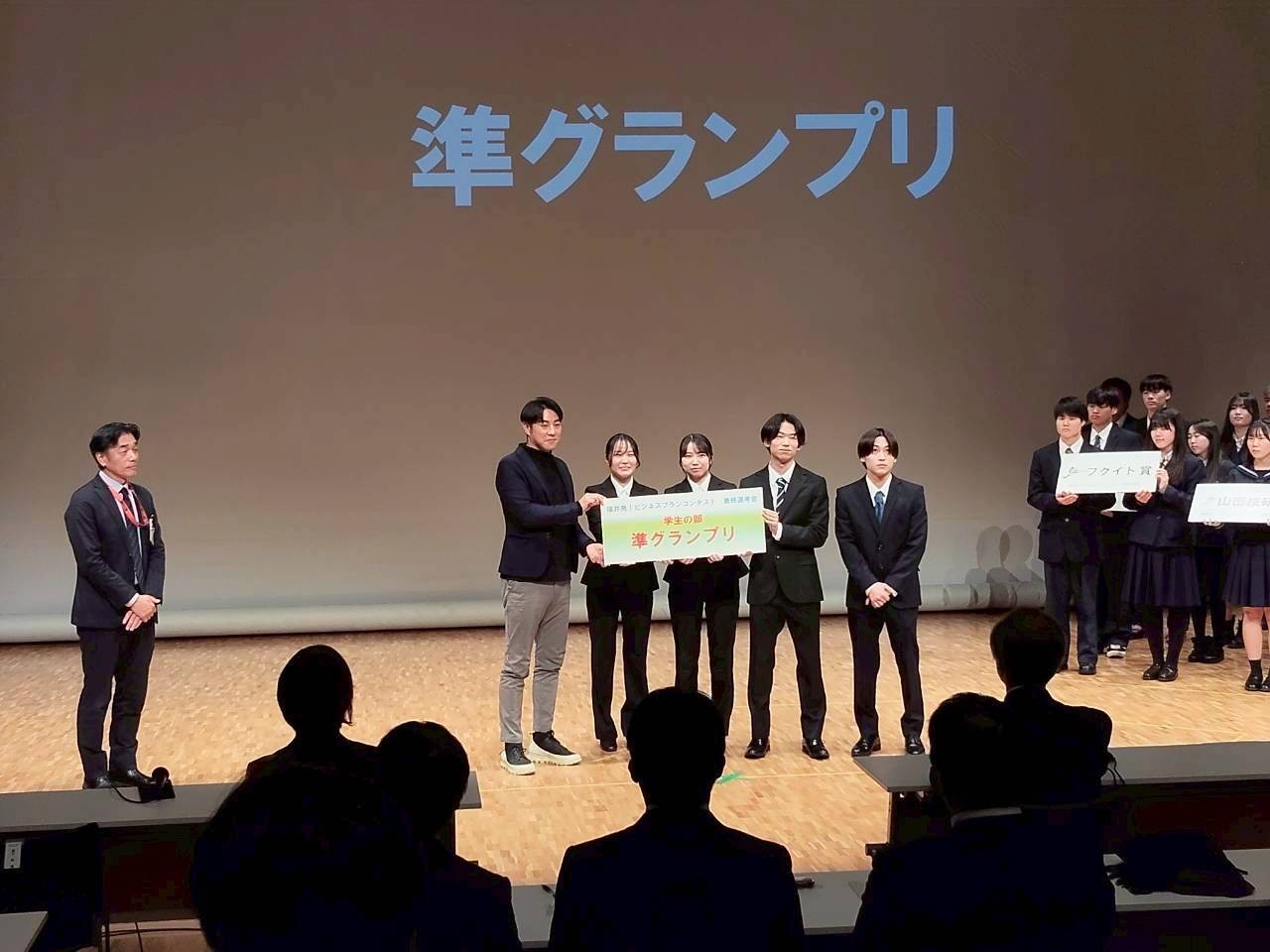 本学経営学科 藤野ゼミ3年生の加藤さん、中村さん、松田さん、三ツ井さんのチームが出場し、学生部門の準グランプリを獲得するとともにスポンサー賞(